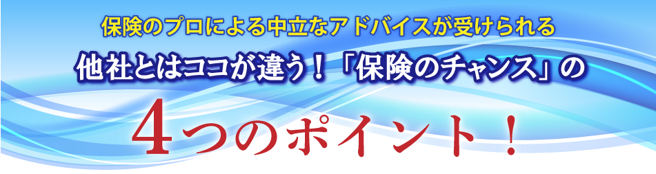 保険のチャンスのFPは、特定の生命保険会社に所属しておりません。ファイナンシャル・プランナー これまでの多くの方は、特定の保険会社の営業担当者からの狭い視野での情報を元に保険に加入していました。 しかし今は、保険も多くの商品の中から比較して自分に最適なものを選ぶ時代です。 ぜひ保険のプロにご相談していただき、各社の商品の中から納得できるものをお選びください。 |
