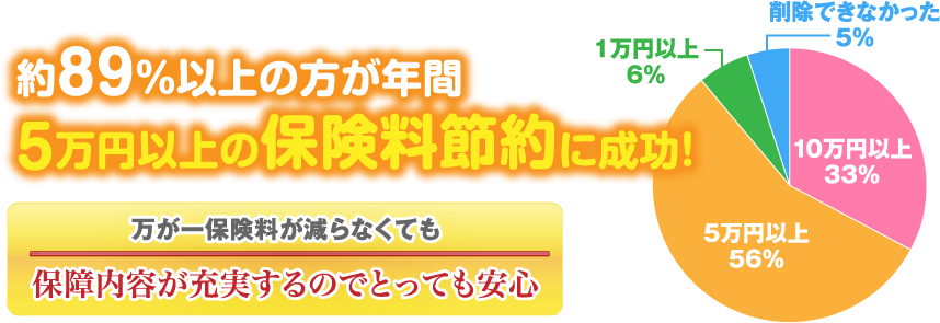 組み合わせ次第で、保険料節約と保障内容のアップ!各社の商品の中から納得できるものを選べる!ということは、それらの中から、ニーズに合ったものだけを組み合わせた、 おいしいとこどりの提案が受けられるということ。 ご利用者の中には、毎月の支払いを節約した上で、保障内容もアップ! なんていう方も決して珍しくないんです。 自社の商品しか扱えない営業担当者では、こうはいきません。 |